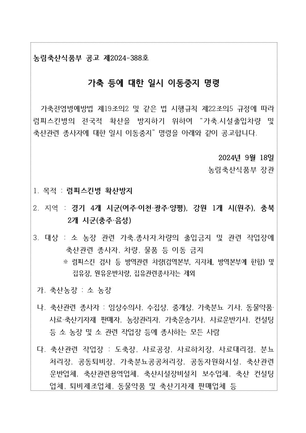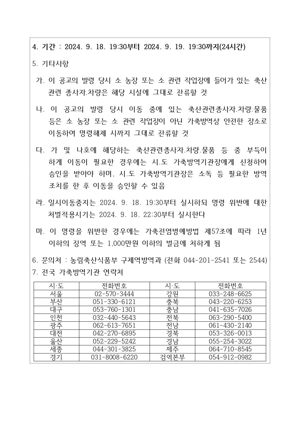 가축(소) 등에 대한 일시 이동 중지 명령(종료)